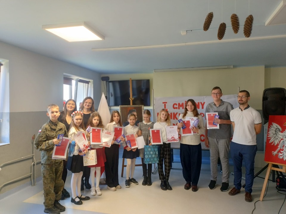 Gminny Konkurs Piosenki Patriotycznej. Naszą szkołę reprezentowały dwie uczennice klasy 4a – Maria Białek i Lena Kierklo, którym towarzyszyła nauczycielka muzyki, Anna Przybylska-Zielińska. Podczas konkursu Lena zaprezentowała utwór „My, Pierwsza Brygada”, natomiast Maria wykonała pieśń „Hej, chłopcy, bagnet na broń”. Obie dziewczynki zaprezentowały wysoki poziom, dużą wrażliwość muzyczną i zaangażowanie, co zostało docenione przez jury – Lena zdobyła II miejsce, a Maria otrzymała wyróżnienie. Serdecznie gratulujemy naszym uczennicom i życzymy dalszych artystycznych sukcesów!