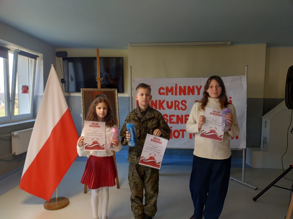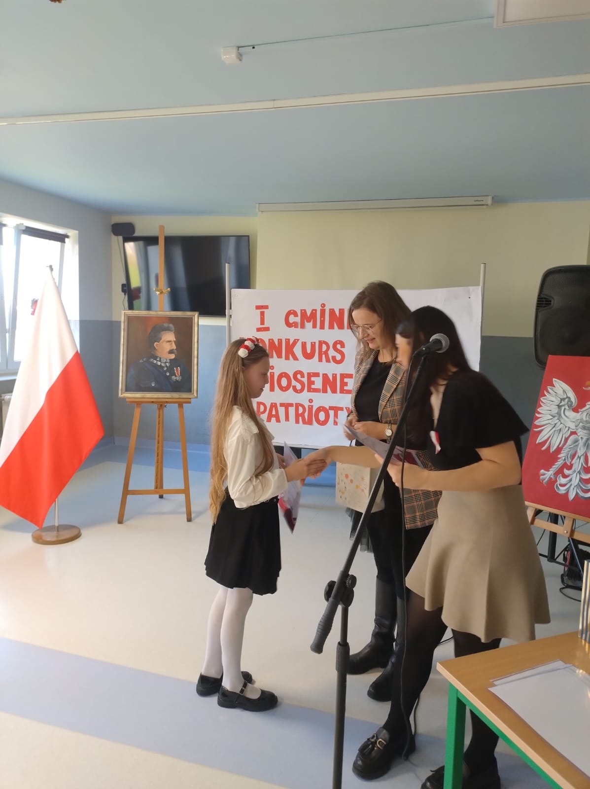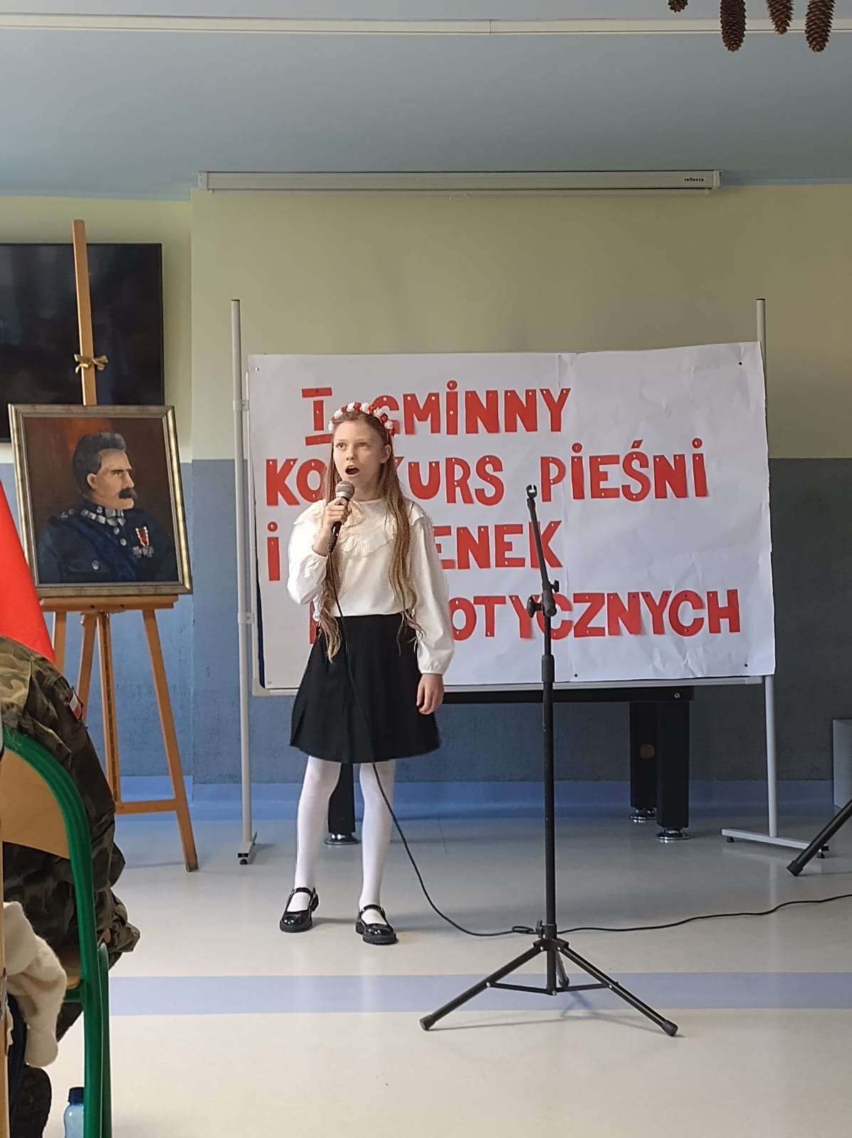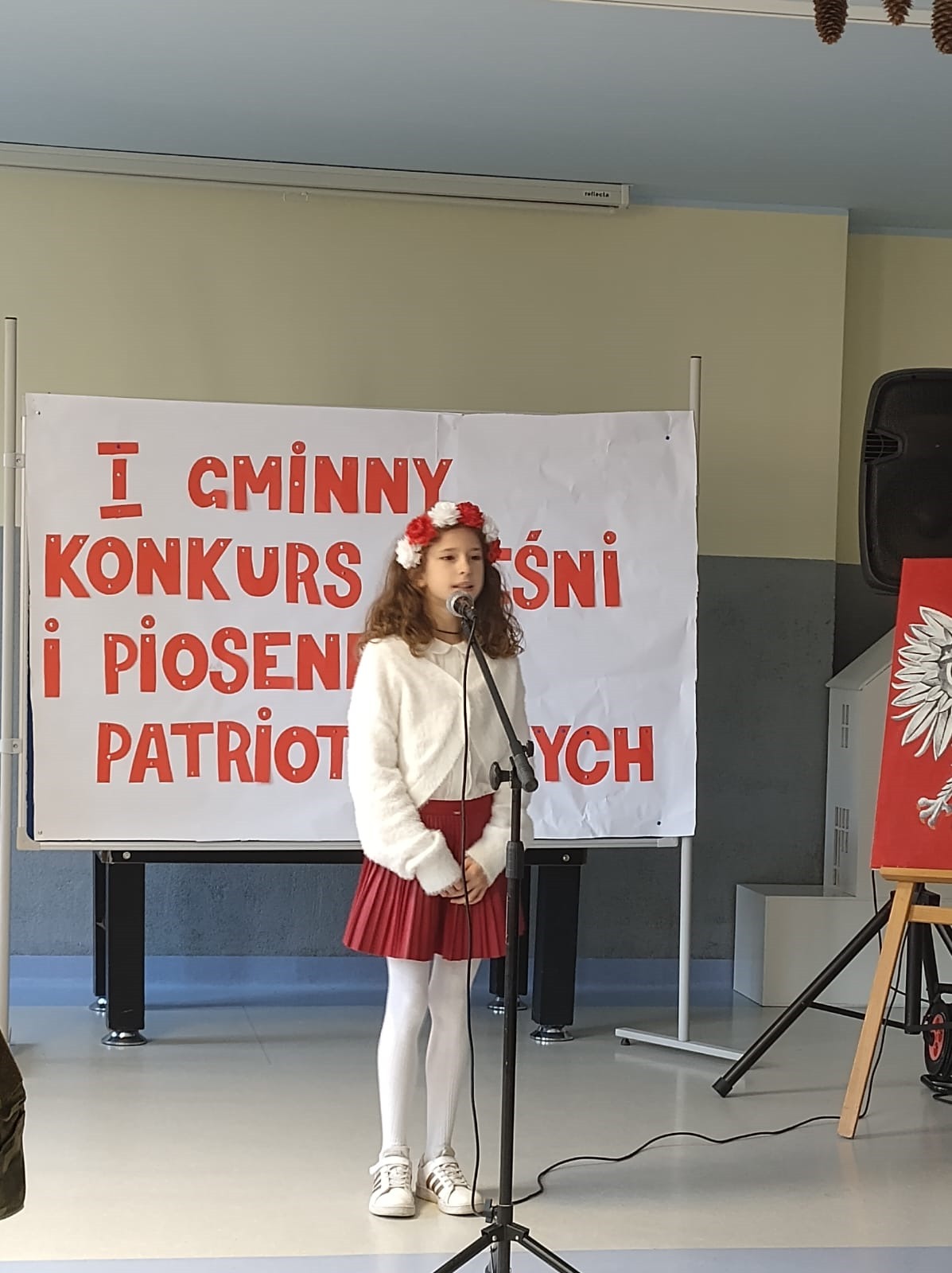 Gminny Konkurs Piosenki Patriotycznej. Naszą szkołę reprezentowały dwie uczennice klasy 4a – Maria Białek i Lena Kierklo, którym towarzyszyła nauczycielka muzyki, Anna Przybylska-Zielińska. Podczas konkursu Lena zaprezentowała utwór „My, Pierwsza Brygada”, natomiast Maria wykonała pieśń „Hej, chłopcy, bagnet na broń”. Obie dziewczynki zaprezentowały wysoki poziom, dużą wrażliwość muzyczną i zaangażowanie, co zostało docenione przez jury – Lena zdobyła II miejsce, a Maria otrzymała wyróżnienie. Serdecznie gratulujemy naszym uczennicom i życzymy dalszych artystycznych sukcesów!